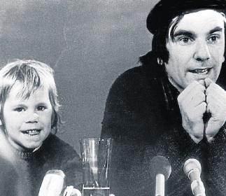 사진은 루디 두츠케 Rudi Dutschke, 1940 - 1979)와 그의 아들의 모습을 보여주고 있습니다. 두츠케는 1968년 학생 운동 당시에 "베를린을 하나의 코뮌 도시로 만들자."고 주장하였습니다. 이때 그는 어느 국수주의 청년의 총에 맞아 의식을 잃습니다. 한 발의 총탄은 그의 뇌를 관통하였습니다. 깨어났을 때 언어능력을 상실하여, 독일어를 처음부터 배워야 했습니다.