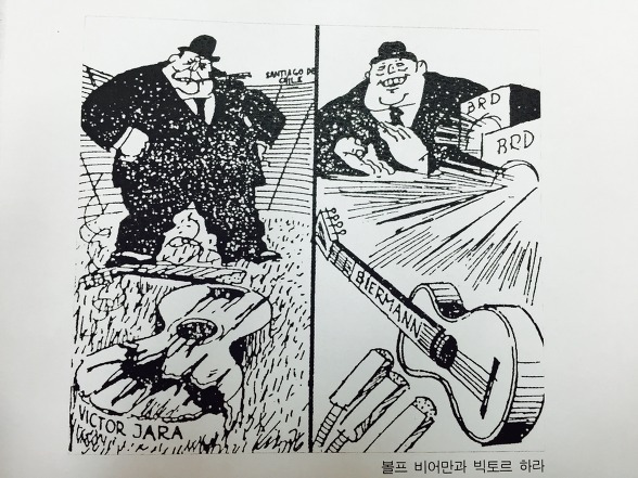 빅토르 하라는 칠레의 음유시인이었습니다. 어째서 칠레의 매스컴은 빅토르 하라에게 등을 돌렸는가요? 그 이유는 피노체트 정부의 탄압 때문에 언론이 제 구실을 하지 못했기 때문입니다. 이에 반해 서독의 매스컴은 비어만에게 우호적 태도를 취했습니다. 문제는 일부 정치인 (보수주의자들)이 그를 정치에 이용하기도 했습니다. 보라, 동독이 얼마나 살기 힘든 나라인지 하고 말입니다. 이에 비하면 서독은 살기 편하지 않는가? 서독이 살기 편한 까닭은 정치가들이 정치를 잘해서 그렇다는 것입니다.