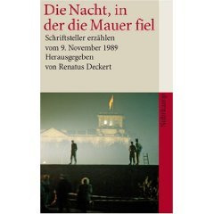 2009년에 독일에서는 『장벽이 붕괴되던 그날 밤 Die Nacht, in der die Mauer fiel』이라는 책이 발간되었습니다. 책을 편찬한 사람은 레나투스 테케르트 Renatus Deckert입니다. 책을 읽으면, 우리는 다음의 사항을 예리하게 간파하게 됩니다. 즉 서독 작가들은 베를린 장벽이 그렇게 순식간에 무너질 줄 꿈에도 생각하지 못했다는 사실 말입니다. 이를테면 한스 울리히 트라이헬 Hans Ulrich Treichel은 1989년 11월 9일 치과를 찾았다고 합니다. 그의 달력에는 베를린 자유대학에서 강의할 고트프리트 벤 세미나에 관한 메모가 적혀 있었습니다. 만약 장벽이 무너지지 않았더라면, 그가 자신의 메모를 그렇게 생생하게 기억하지 못했으리라고 합니다.