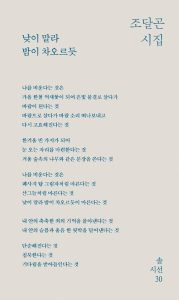 조달곤 시집: 낮이 말라 밤이 차오르듯, 솔 2021, 53 - 55쪽.