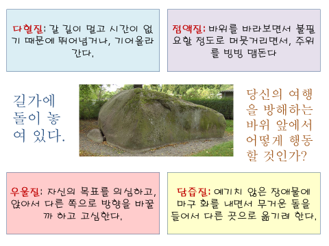 아래의 내용은 완전한 진리라고 말할 수 없다.네 가지 유형은 가설로 이해되면 좋을 것 같다, 왜냐면 수십억의 인간을 4 유형으로 나누는 것 자체가 단순하고, 천편일률적이기 때문이다.