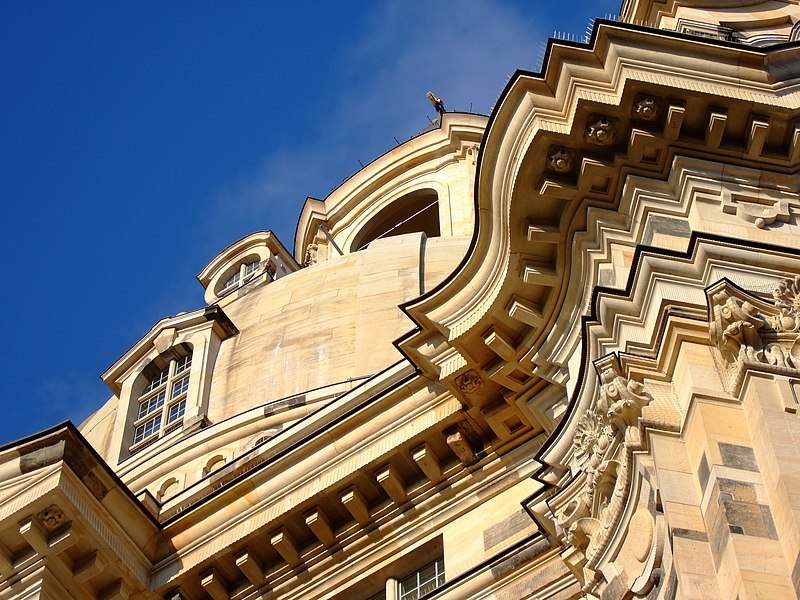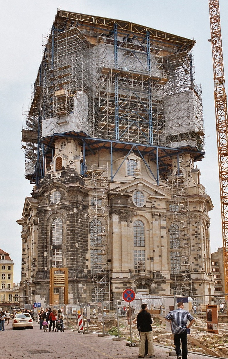길이 50미터, 넓이 41.96 미터, 높이 91.23 미터. 이 사진은 1726년부터 1743년 사이에 중공된 교회의 모습입니다. 그러나 제2차 세계대전 당시에 이 건물은 폐허가 되었습니다. 드레스덴 도시 전체가 연합국의 폭격으로 잿더미가 되었습니다.
